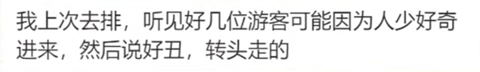 有網友説遇到遊客因好奇進來,然後説好醜之後轉頭就走。