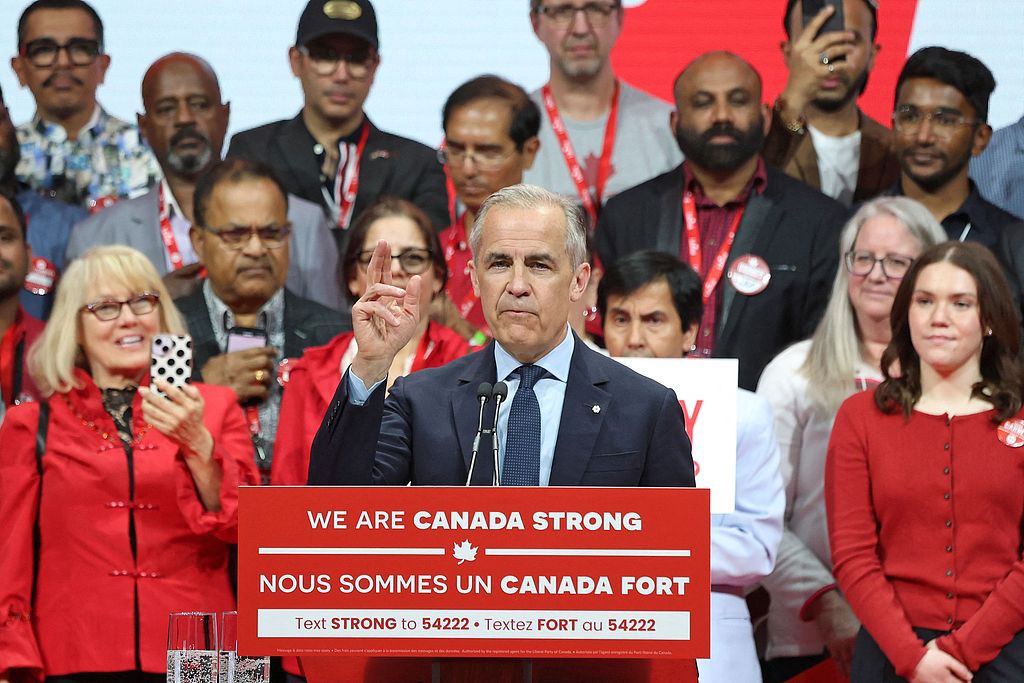 當地時間2025年4月29日,加拿大渥太華,自由黨在選舉中獲勝後,總理馬克·卡尼發表講話。圖源:視覺中國