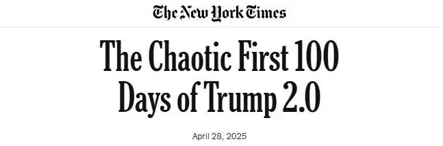 當地時間4月28日,特朗普就職美國總統即將滿百日之際,美國媒體《紐約時報》發表評論文章,標題為《特朗普2.0中混亂的頭100天》。