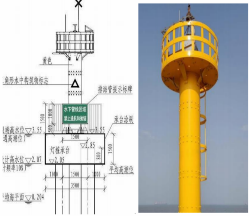 為了滿足排海管垂直頂升段噴口的運行安全,在頂升段噴口區域佈設4座固定式燈樁(下設燈樁平台)。