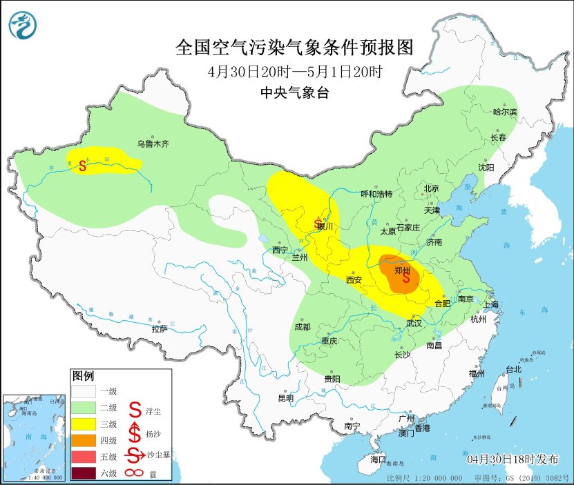 4月30日夜間至5月1日,陝西關中、山西南部等地有揚沙或浮塵天氣。5月4日至5日,區域大部將再次受沙塵天氣影響。