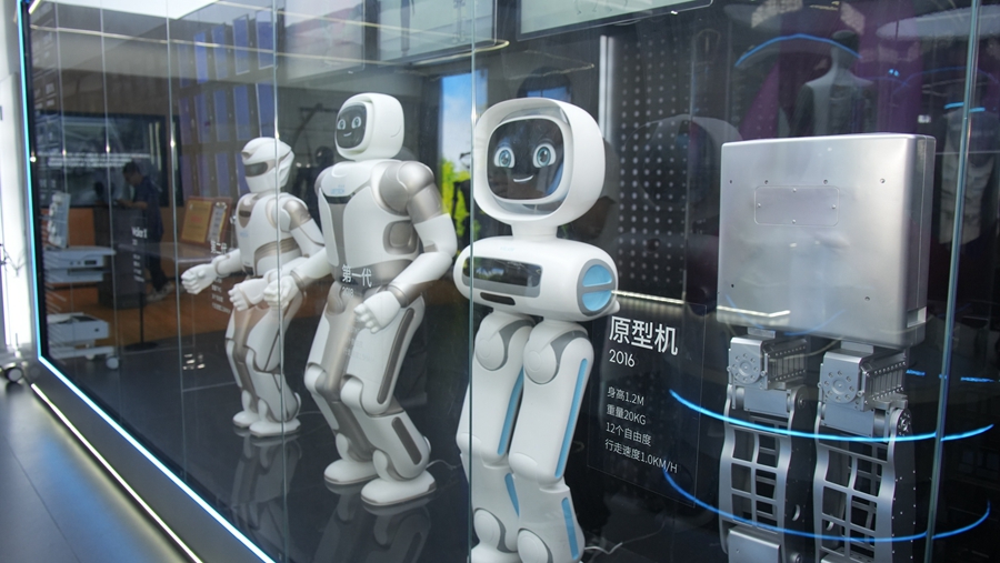 展廳中的機器人與訪客互動。新華網 於楊 攝