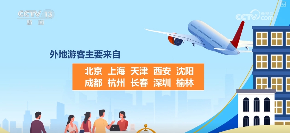外地遊客主要來自北京、上海、天津、西安、瀋陽、成都、杭州、長春、深圳、榆林。