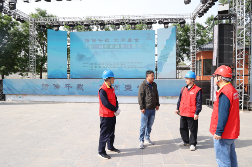 It is understood that from April 26 to April 30, the 11th Du Fu’s Hometown Poetry Week will kick off at the Du Fu’s Hometown Cultural Park in Gongyi City, featuring 15 activities in three categories: public cultural activities, main events, and promotional activities. To ensure the smooth progress of the event, the Gongyi Power Supply Company of the State Grid, based on the actual power demand of the scenic area, conducted comprehensive inspections and maintenance of the power supply lines and equipment at the event site and surrounding areas in advance, eliminating potential power hazards to ensure normal operation of the equipment and reliable power supply to the tourist attractions.