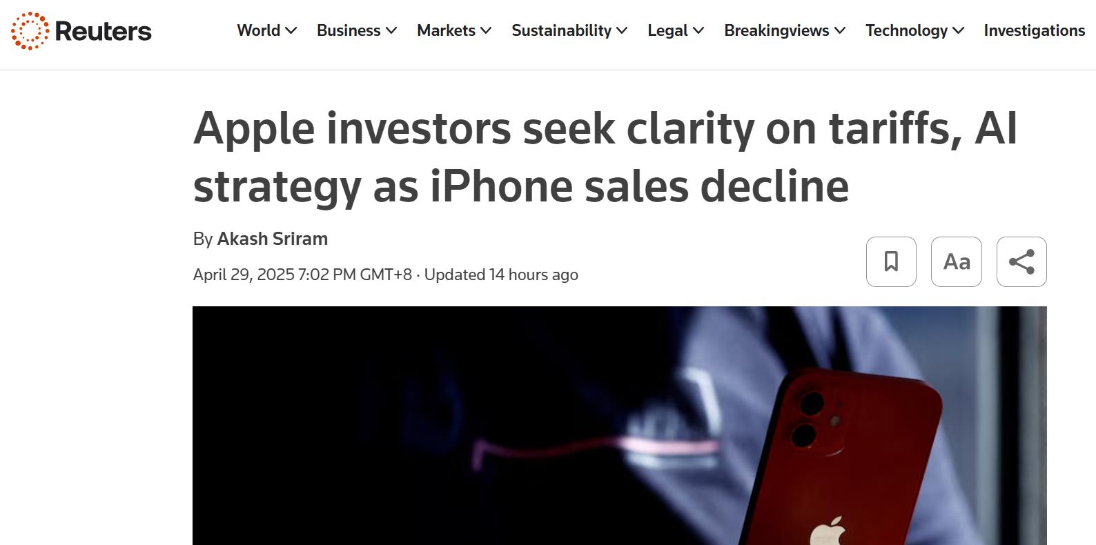 外媒:面臨關税與AI雙重挑戰,蘋果二季度業績備受關注