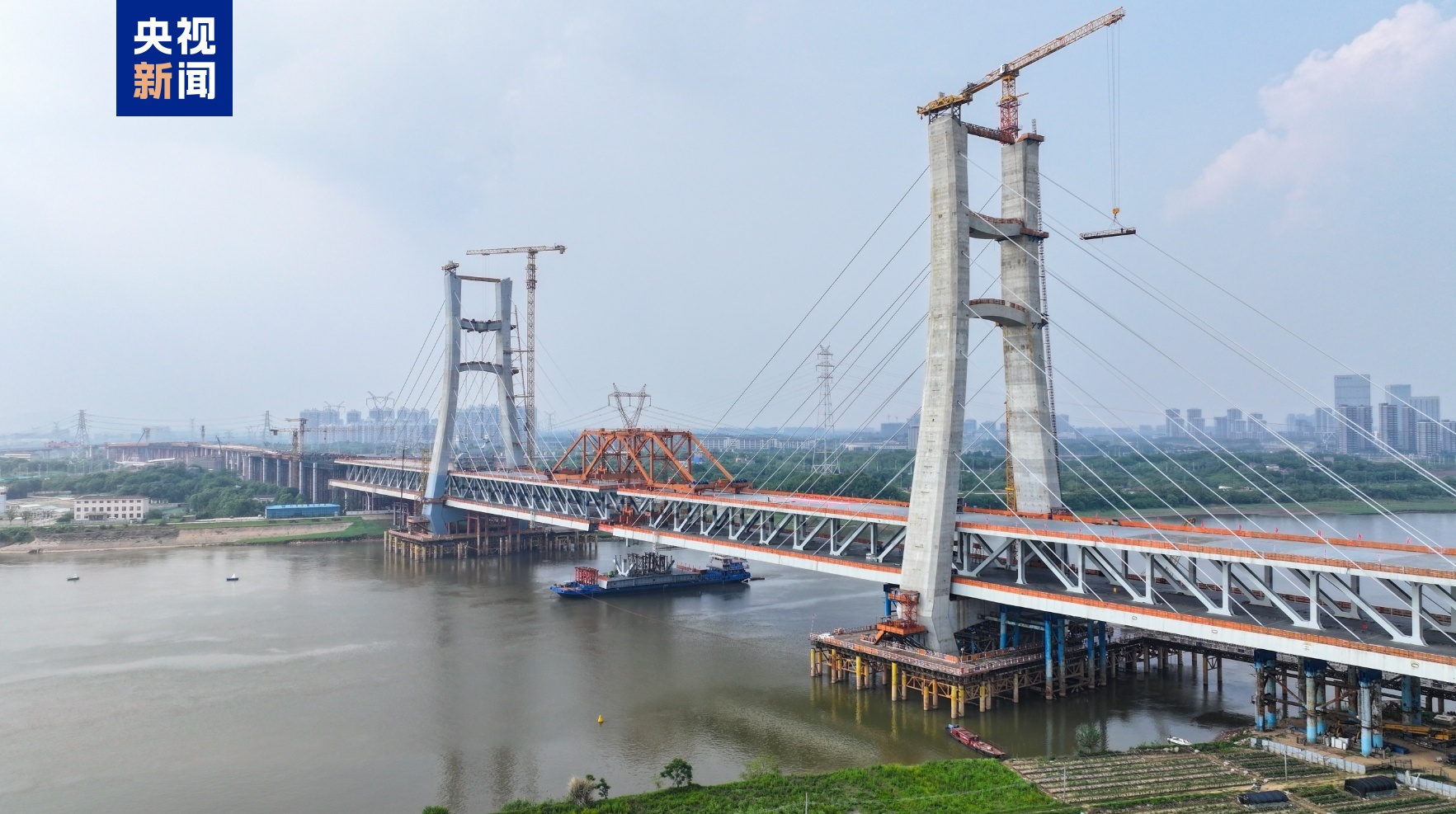 昌九高鐵揚子洲贛江公鐵大橋位於南昌市境內,全長19公里,由北向南跨越贛江西支、中支和南支三條支流,是一座集高速鐵路、城市快速路、城市主幹道三種交通方式於一體的大跨度公路鐵路合建橋樑。此次吊裝完成的西支主橋是全線控制性工程,採用“豎琴型索麪鋼箱桁組合梁斜拉橋”設計,主跨320米,全長702米,共45個鋼箱桁梁節段,單節最重達到958噸,全橋鋼箱桁梁總重約為3.41萬噸,相當於81輛高速列車的重量之和,規模與施工難度均居國內同類橋樑前列。