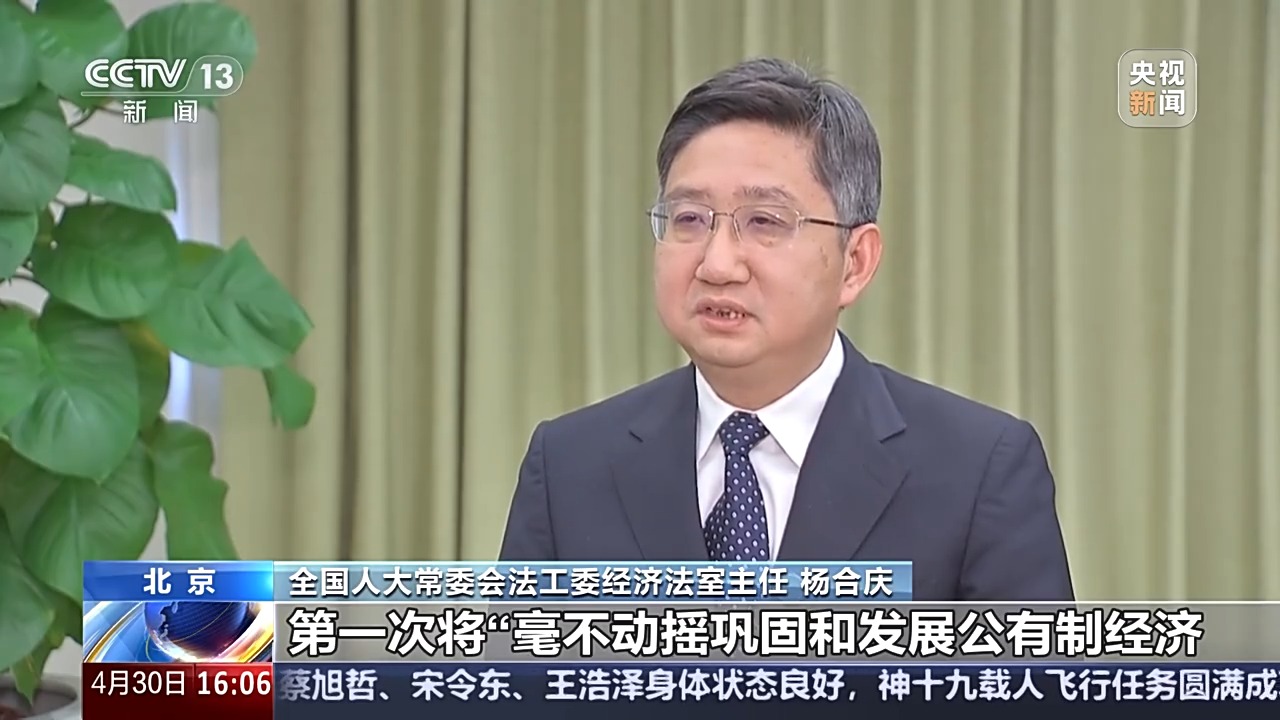 據楊合慶介紹,民營經濟促進法與憲法關於社會主義基本經濟制度的規定貫通起來,將支持和保障民營經濟發展的法律制度融入中國特色社會主義法律體系,具有重大的法治意義。