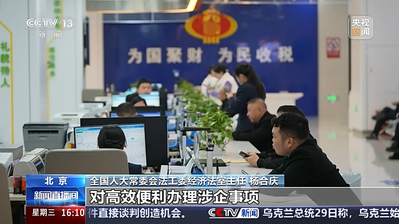 *全國人大常委會法工委經濟法室主任 楊合慶:*強化行政執法監督,堅決遏制“亂收費、亂罰款、亂檢查、亂查封”等行為,對高效便利辦理涉企事項、完善人才激勵政策、健全信用修復制度、健全糾紛多元化解機制、發揮行業協會商會作用、加強海外綜合服務和權益保護等作出規定。