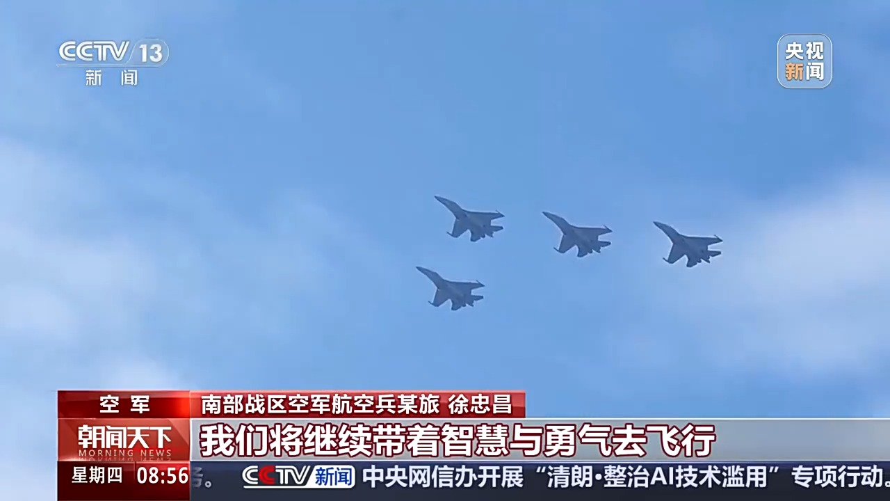 *徐忠昌:*給我印象最深的一次,是有一日24小時不間斷處置敵情,凌晨還在遠海與敵進行空中對峙,纏鬥了近50分鐘。我們常説:面對強敵、對手,要勇於亮劍,腰桿子不能彎,腿肚子更不能抖!作為航空兵,我們將繼續帶着智慧與勇氣去飛行,飛出人民空軍的自信,堅決守護祖國的領空安全。