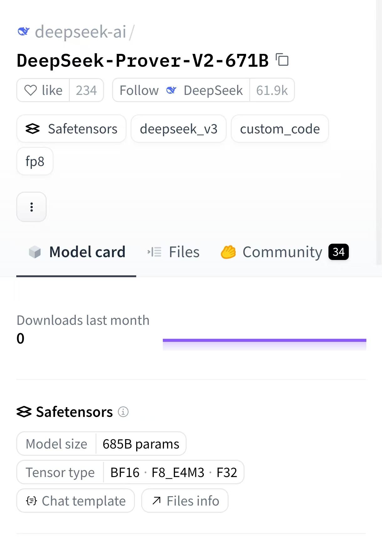 【環球網科技綜合報道】5月1日消息,DeepSeek於4月30日在AI開源社區Hugging Face上正式發佈了一款名為DeepSeek-Prover-V2-671B的新模型。