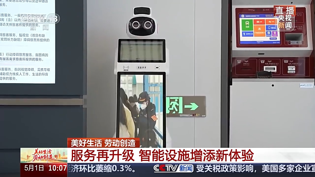 此外,我們在車站還有一個新發現,那就是身邊多了機器人。麗水站首次引入“機器狗”,候車室巡視、旅客幫扶它都行。在國鐵呼和浩特局豐鎮北站首次投用的智能服務機器人,可以為旅客提供進出站預約、信息諮詢等服務。智能的不僅是機器人,不少車站裏旅客只需刷身份證,就能自助借用輪椅、枴杖等輔助器具,歸還時點擊屏幕上“一鍵確認”鍵即可。鄭開城際鐵路新投入運營的動車組列車搭載智能交互系統,給大家帶來更智能、更舒適的乘車環境。