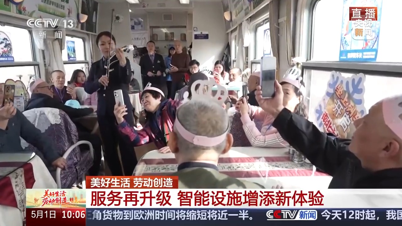 “銀髮達人”出遊,服務更要跟上。上海站的“銀齡管家”、“銀髮專座”、便民服務箱等適老服務為老年旅客出行提供方便;國鐵哈爾濱局從今天起,開行哈爾濱至亞布力的“銀髮”旅遊專列,列車上還提供免費妝造和旅拍服務。今年“五一”假期運輸期間,全國共開行跨鐵路局銀髮旅遊專列20趟。銀髮列車給老年旅客提供了特色體驗,銀髮經濟也給這個假期增加了新亮點。