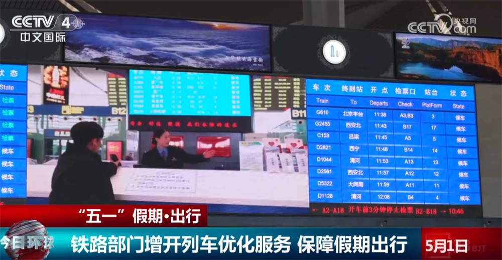 廣州南站客運一車間技術員王娟稱:“為充分滿足旅客出行需求,廣州南站精準實施‘一日一圖’。4月29日至5月6日,計劃增開高鐵列車1368列。”