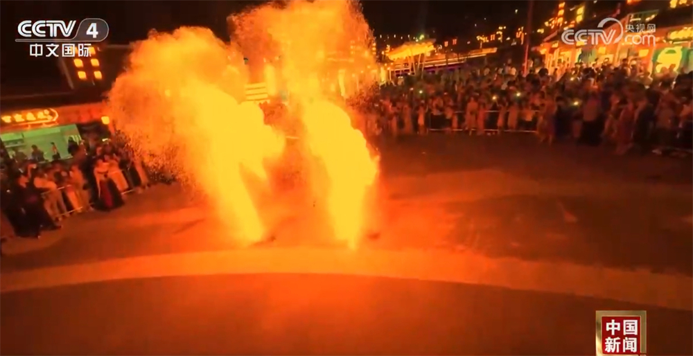 “五一”假期期間,湖北荊門市推出系列非遺文化活動、各具特色的非遺展演和民俗體驗。大型水秀原創晚會《遇見荊楚》,融入了火壺、民俗儺舞等多種非遺元素,另有花鼓戲、雜技等非遺項目展演。豐富多彩的節慶活動吸引四方遊客前來體驗打卡,感受非遺魅力。
