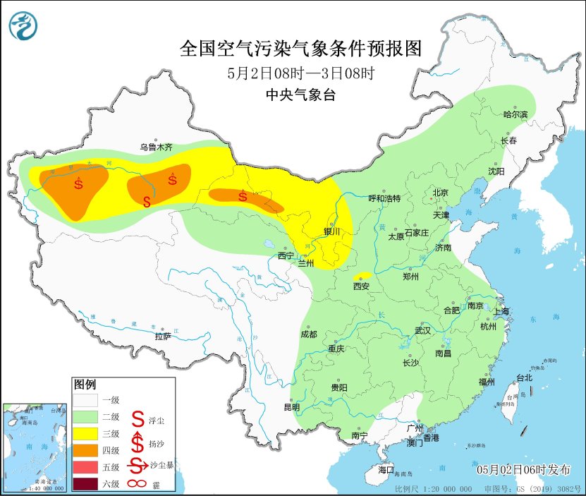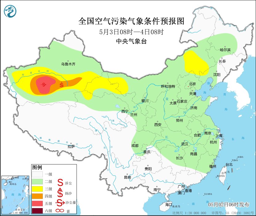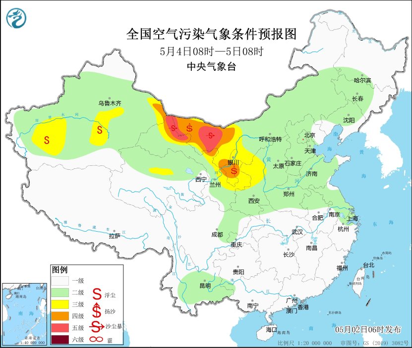 2日至3日,新疆東部和南疆盆地、內蒙古西部、甘肅西部、寧夏等地的部分地區有揚沙或浮塵天氣,新疆南疆盆地局地有沙塵暴。4日至5日,新疆東部和南疆盆地、內蒙古中西部、西北地區東部、華北西部和南部、黃淮、四川盆地北部等地的部分地區有揚沙或浮塵天氣,內蒙古西部、甘肅西部、寧夏等地的部分地區有沙塵暴。