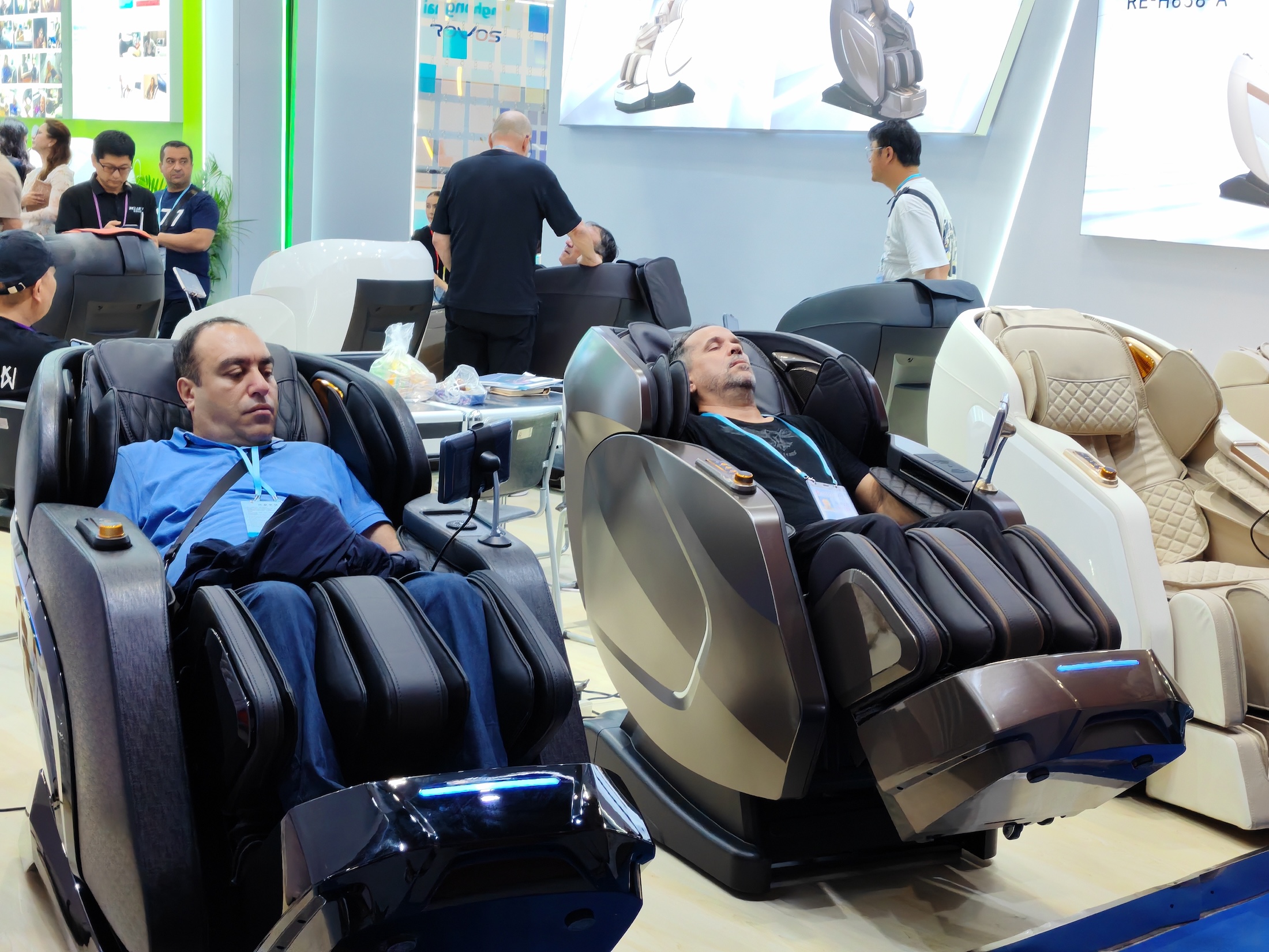 客商體驗按摩椅。人民網 寧玉瑛攝