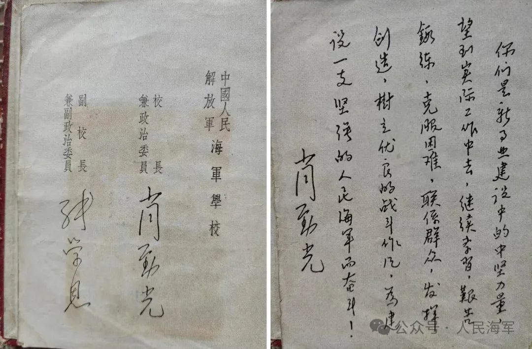 上面有當時校長手寫的寄語