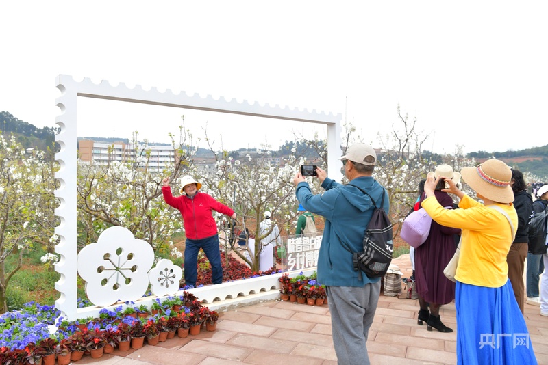 遊客在梨花節打卡拍照(央廣網發 楊淼茹 攝)