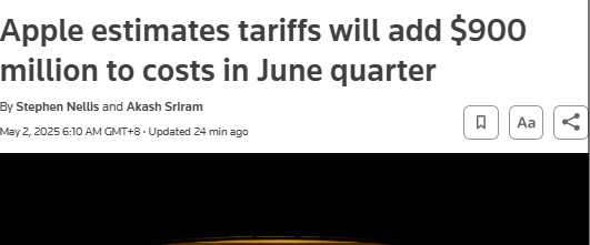 蘋果第二財季業績略超預期!庫克:關税不變,將增加9億美元成本