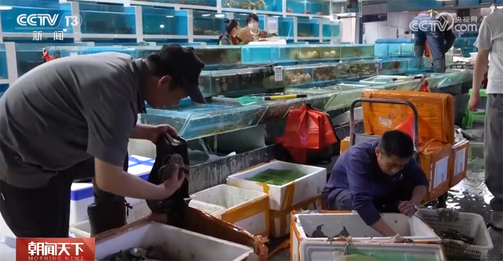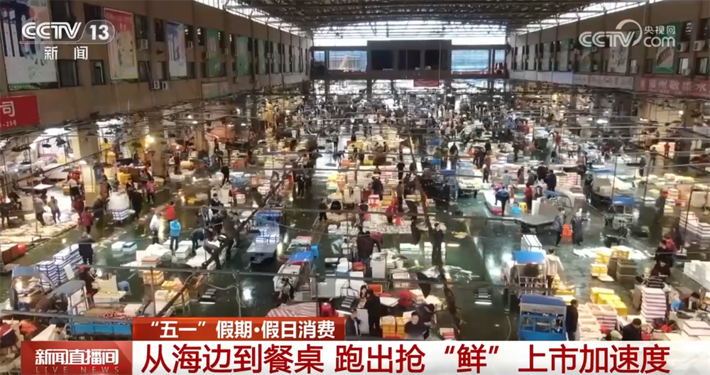 央視網消息: 海鮮是不少家庭節日餐桌必不可少的美食,“五一”假期,市場上琳琅滿目的海鮮迎來消費高峯。從海邊到餐桌,作為中轉站的海鮮市場,正跑出搶“鮮”上市的加速度。