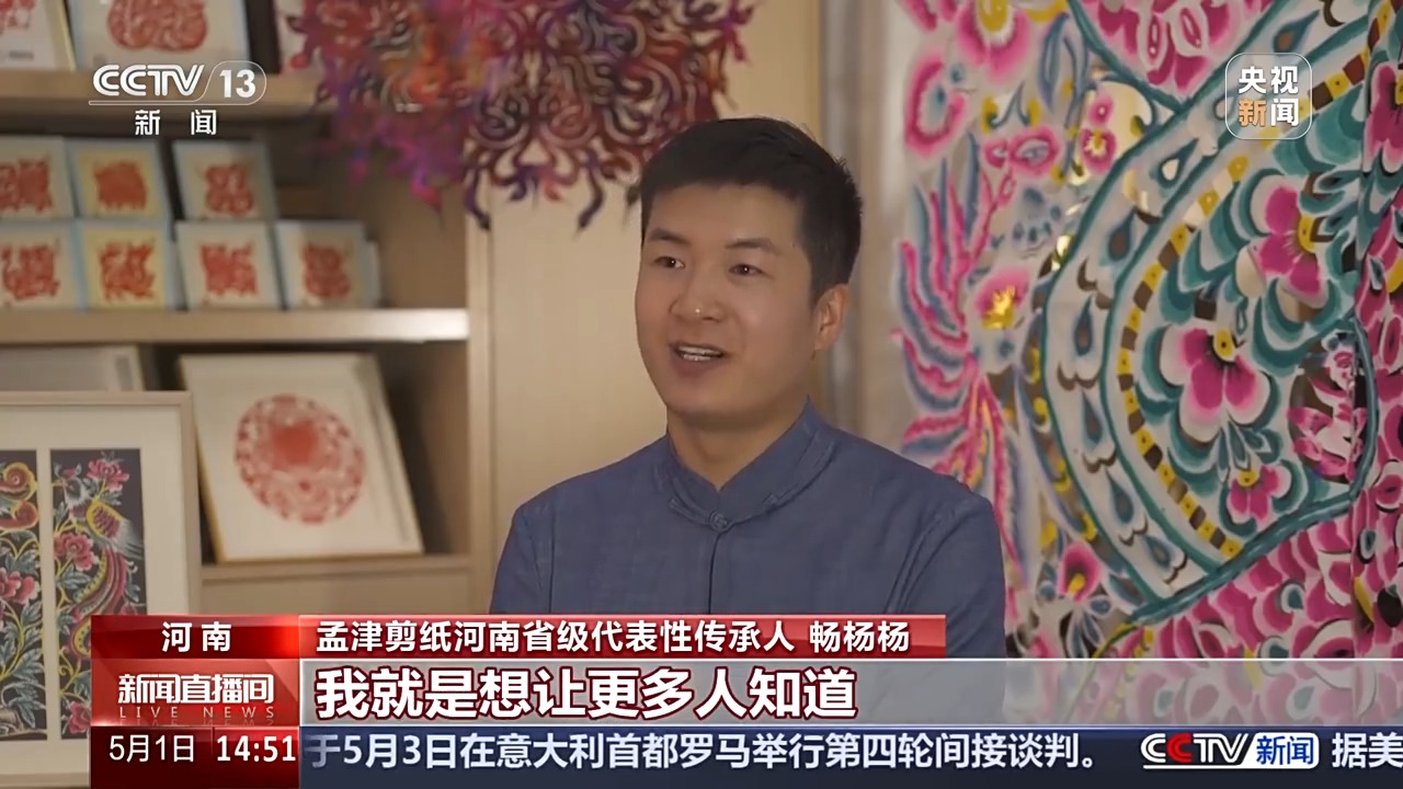 *孟津剪紙河南省級代表性傳承人 暢楊楊:*傳統的技藝是我們的根,是我們的魂。作為一名剪紙非遺代表性傳承人,我希望它能夠一直流傳下去,在不同時代綻放出不同的美。