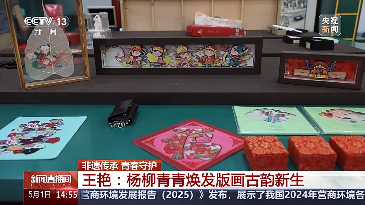 王豔在“老版復生”過程中,拆解傳統技法,比如畫訣中短胳膊短腿是多短?小鼻子大眼睛的比例怎樣會更好?她一一詳細記錄,貢獻了青年傳承人的“新民間經驗”。如今,古版年畫中的楊柳青元素也被開發成各式新潮的文創產品,“過年才貼的畫”變成了“身邊常見的畫”,讓年輕的消費者愛不釋手。
