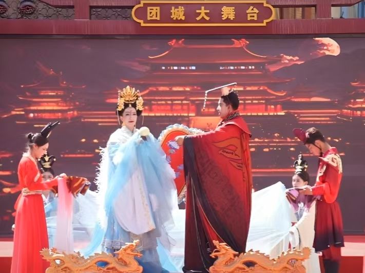 這是5月1日和田團城開城儀式上沉浸式舞劇《西巡傳説》的演出現場。