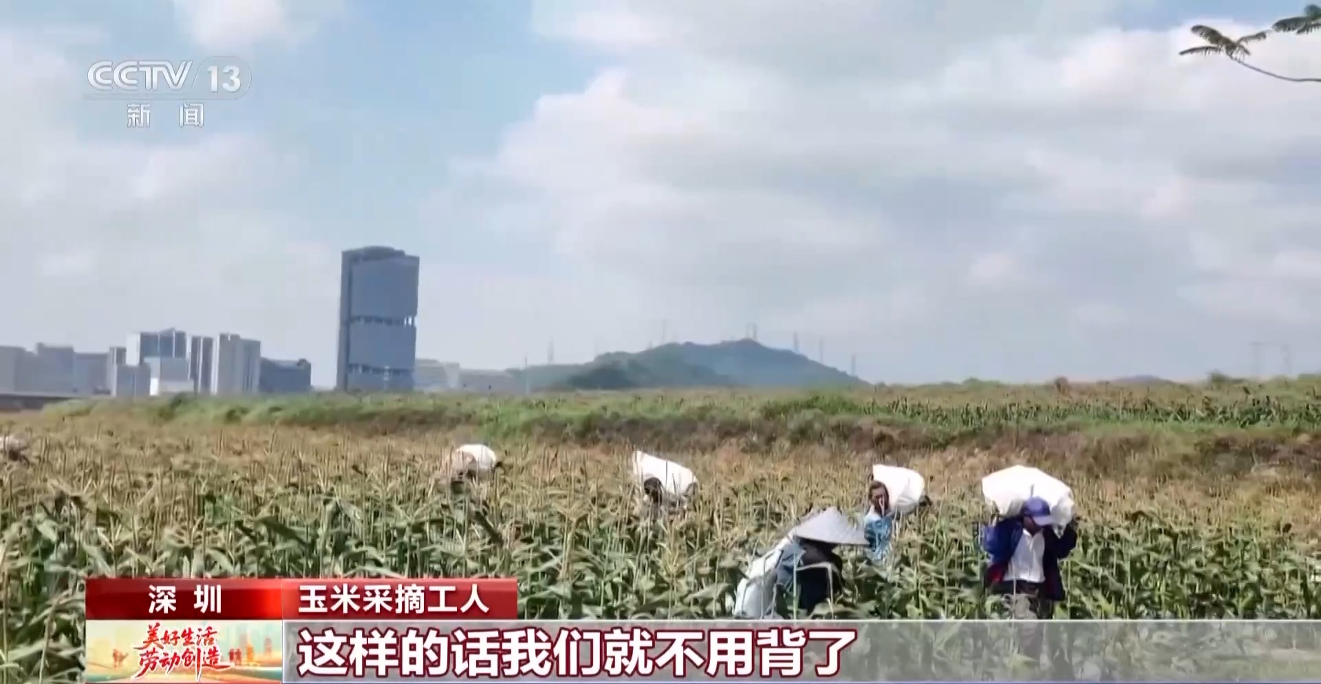*總枱央視記者 張春玲:*在深圳光明區,2000畝的玉米地都已經成熟了,這次我的工作當中有了一個新搭子——採摘小車。
