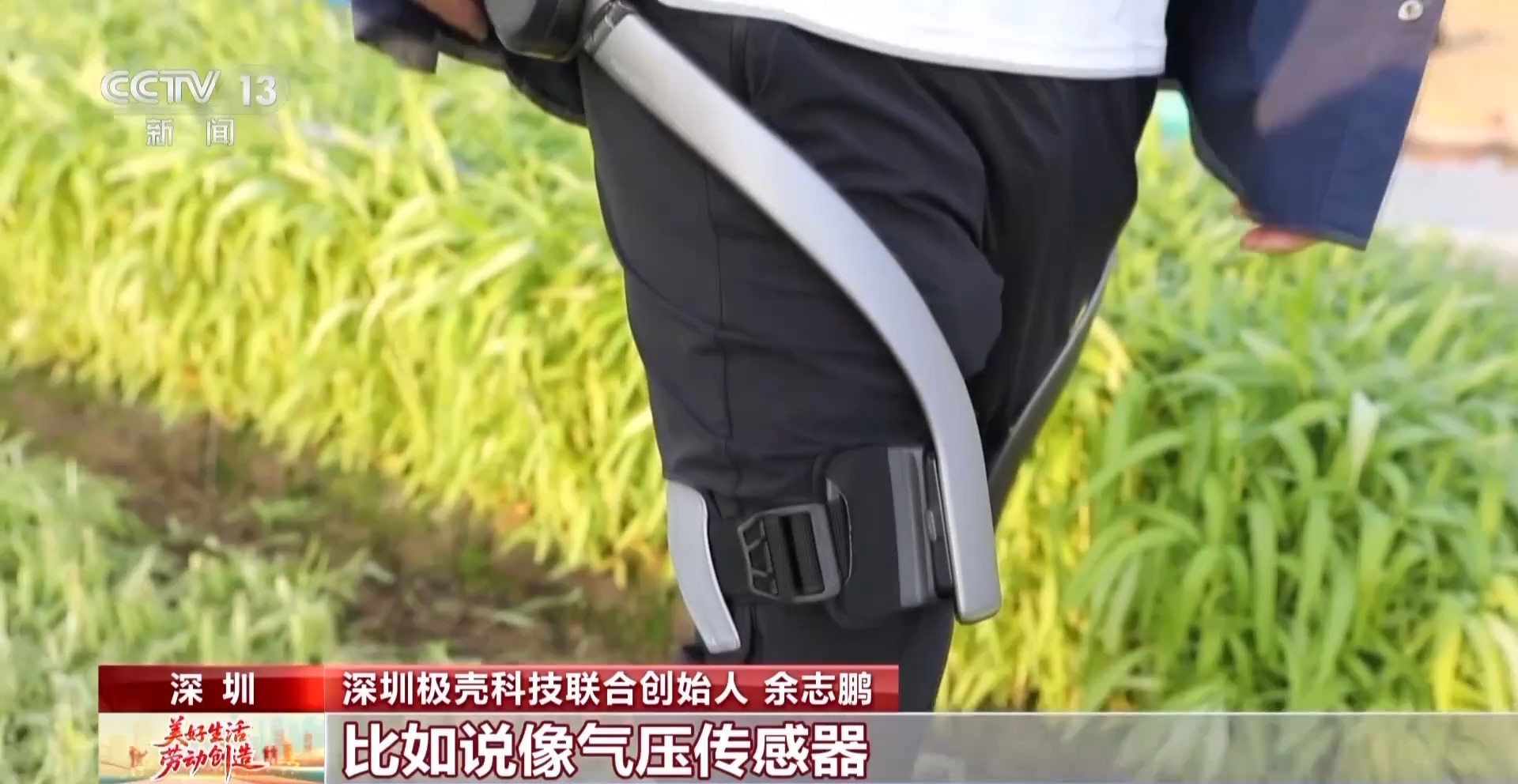 科技的助力讓幹農活兒變得更輕鬆。記者又變身成了田裏的“賽博”農民,技術團隊介紹,這些正在測試的外骨骼裝備,可以幫助我們提升70%的腿部力量,降低30%的身體能耗,甚至還可以降低30公斤的背部負重。繁重的工作或者長途跋涉輕鬆了不少。