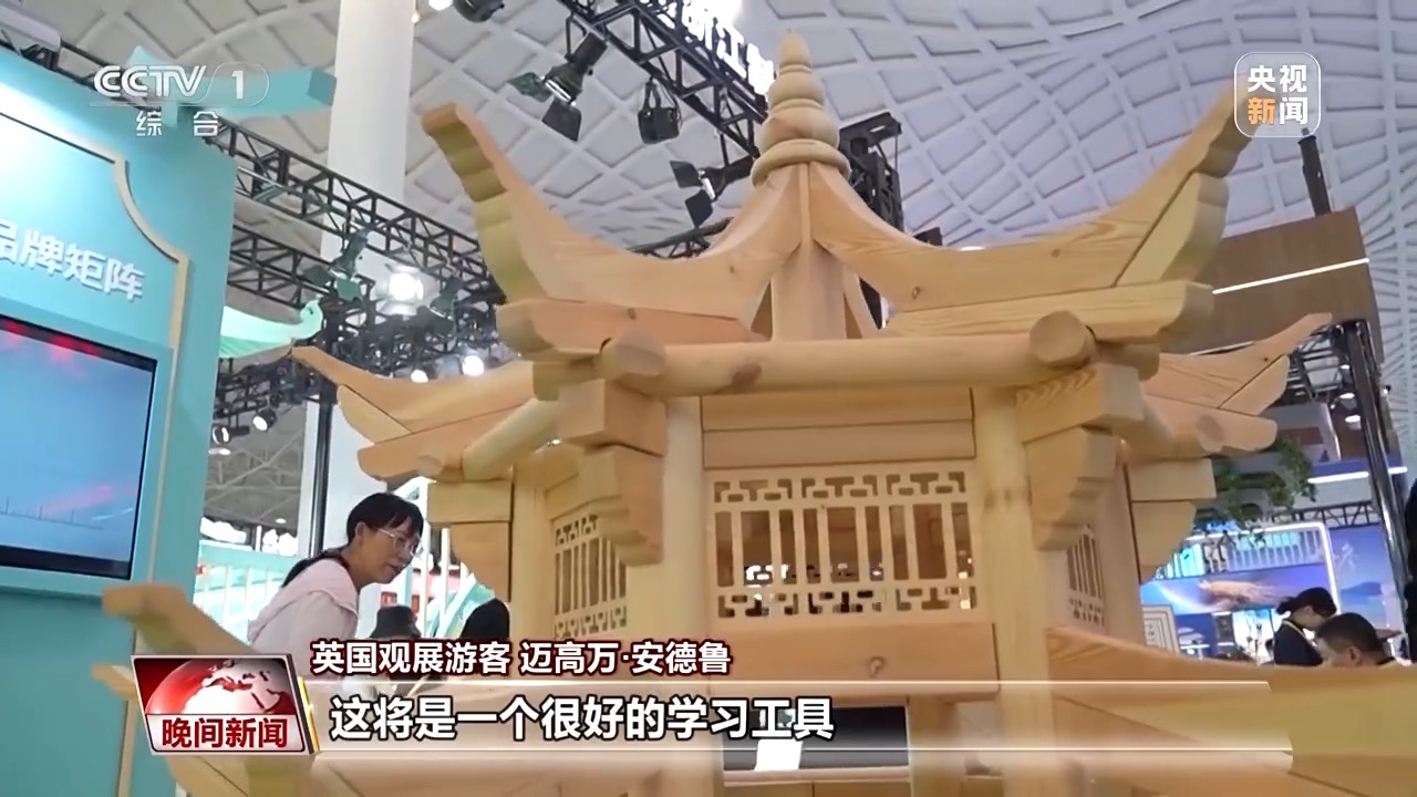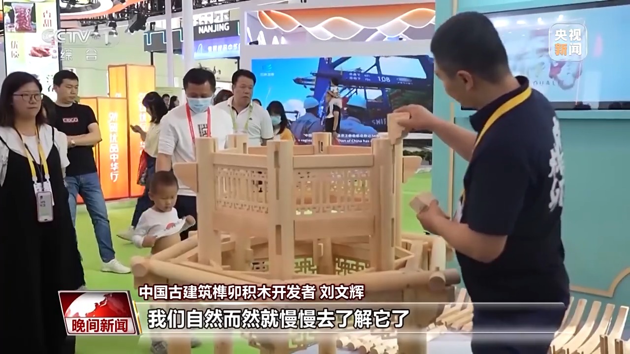 與“斗拱爺爺”一樣,來自浙江杭州的劉文輝也在用自己的方式,拉近人們與傳統文化之間的距離。十幾年前,他開始鑽研中國古建築營造技藝,如何能讓非遺技藝變得簡單又快樂?劉文輝想到了把榫卯結構做成積木。在不久前的第五屆中國國際消費品博覽會上,劉文輝將自己研發的榫卯積木帶上了展會。