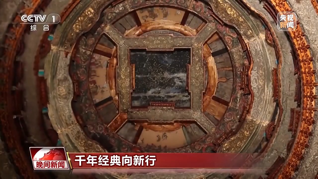 *總枱記者 羅子瑛:*我頭頂的這座直徑兩米的六層藻井,支撐起的是一片五百多年前繪製的唐代星空。這是先農壇的鎮館之寶,很多人來到這裏,都是為了看一眼這座天花板中的“天花板”。而我們目之所及的瓊樓玉宇和精工細作,都是由榫卯構建的。