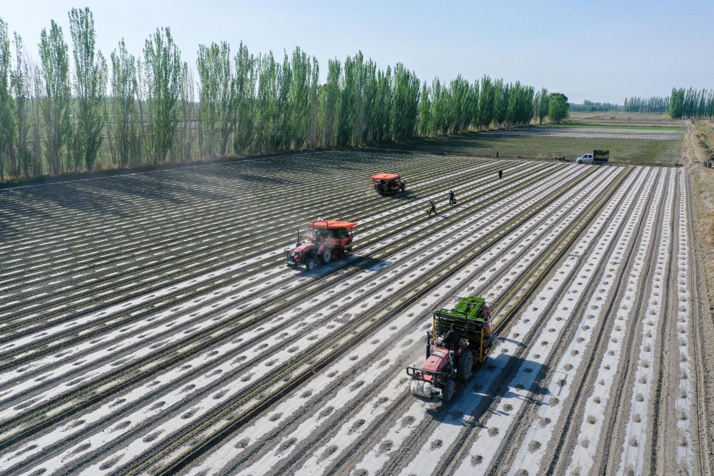 雨過天晴陽光正好,拖拉機轟隆隆駛過地壟,嫩苗紮下根後隨風搖曳。數月過後,成熟的辣椒、番茄、枸杞又將在戈壁灘上匯成一幅幅火紅的豐收畫卷。(記者苟立鋒、丁磊)