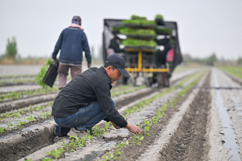 而在昌吉回族自治州瑪納斯縣的千畝加工番茄種植基地,數台新式番茄移栽機正有條不紊地移栽加工番茄苗。“移栽機可一次性完成打孔、栽苗、扶苗、覆土壓實等工序,相當於30人的工作效率。”種植户劉豔玲説。