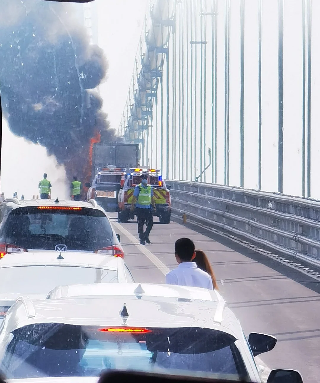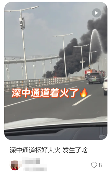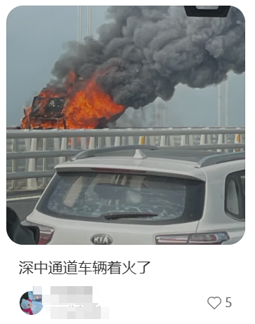 “深中通道車輛着火了”
