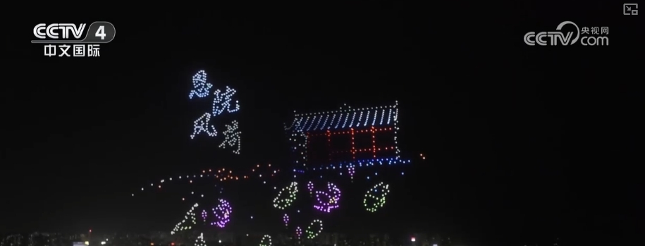 在湖南永州零陵古城景區展示中心,機器人為遊客帶來了精彩表演。機器人體驗區更是吸引大批遊客們參與其中。晚上,1000架無人機在空中變幻出各種炫酷圖案與本地文化創意造型,配合非遺打鐵花的熾烈火焰,給遊客帶來沉浸式的浪漫體驗。