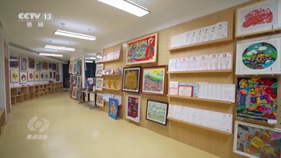 劉小清接受採訪的房間是學校的一間畫室,一幅幅色彩斑斕的作品記錄着在劉小清及老師們的輔導下孩子們的成長。
