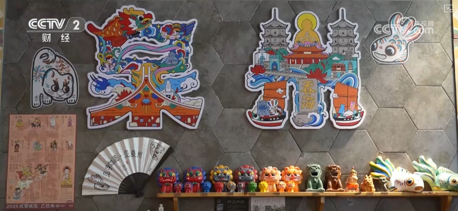 在泉州本土的一家文創商店裏,設計團隊挖掘泉州海絲文化、閩南文化等特色文化,開發了300種文創產品。最受遊客喜愛的是其中一款滴水獸文創,節假日一家店一天能賣出超500個。