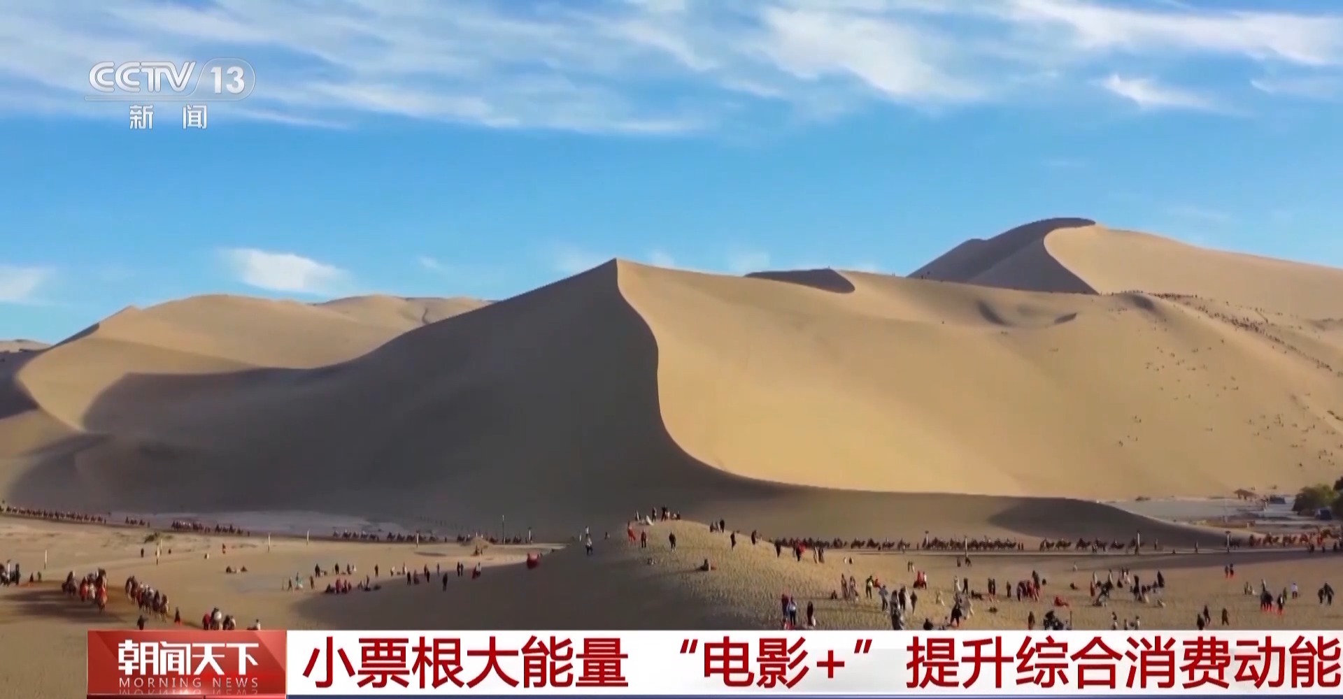 除了電影票可以聯動不同消費場景,在甘肅敦煌,還推出了景區門票與電影的聯動——遊客們憑鳴沙山月牙泉景區門票,去敦煌的任一家影院觀影時,均可免費獲得一份小桶爆米花或飲品一杯。這也吸引了不少遊客在遊覽景區之餘,走進影院觀影。