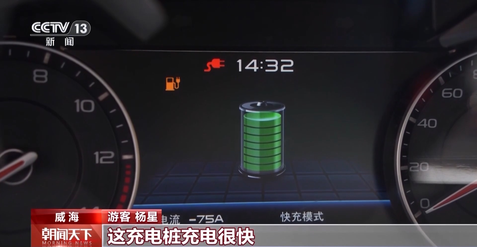 *遊客 楊星:*這充電樁充得很快,半小時就從50%充到了100%,充電體驗很好。