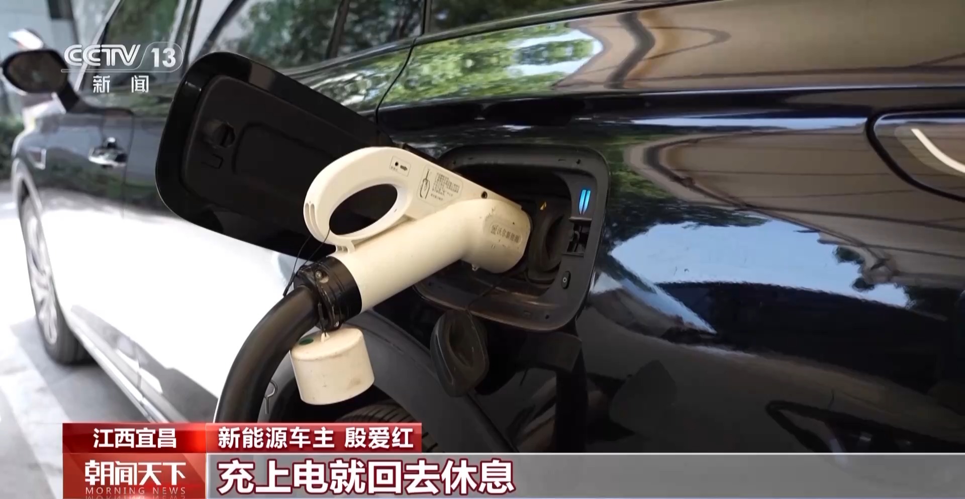 *新能源車主 殷愛紅:*我們一下高速就看到這裏有充電樁就開過來了。每個服務區都有,我們不管到哪個服務區,只要休息馬上就能找到充電樁。