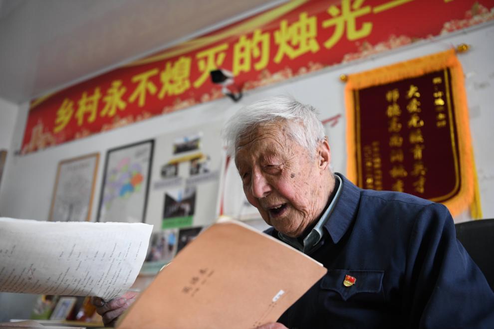 安徽馬鞍山卜陳村的午後,陽光和煦。三尺舊講台上,97歲的葉連平正在給學生們上課。