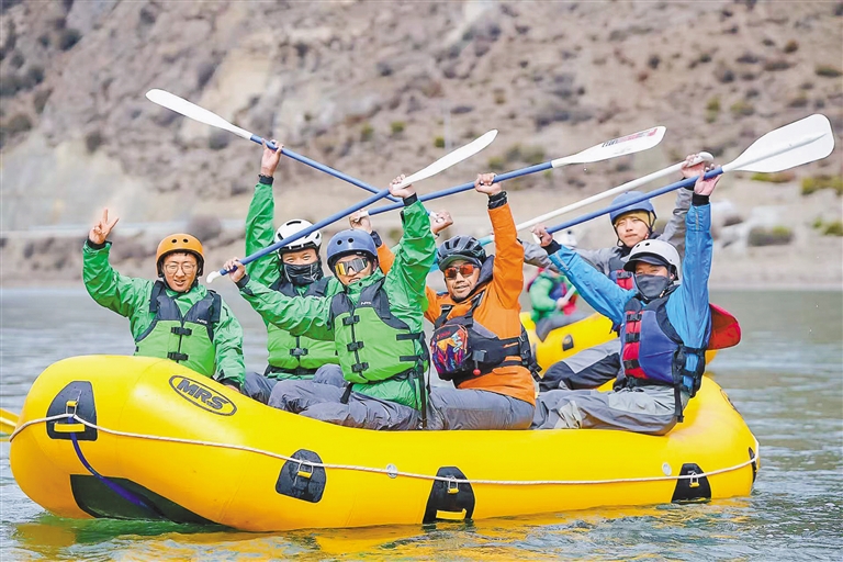 “五一”假期,墨竹工卡唐加鄉騎漂行活動舉行,近30位户外運動愛好者體驗了13公里騎行、4公里徒步、10公里漂流等項目。圖為户外運動愛好者體驗10公里漂流項目。記者 鹿麗娟 攝