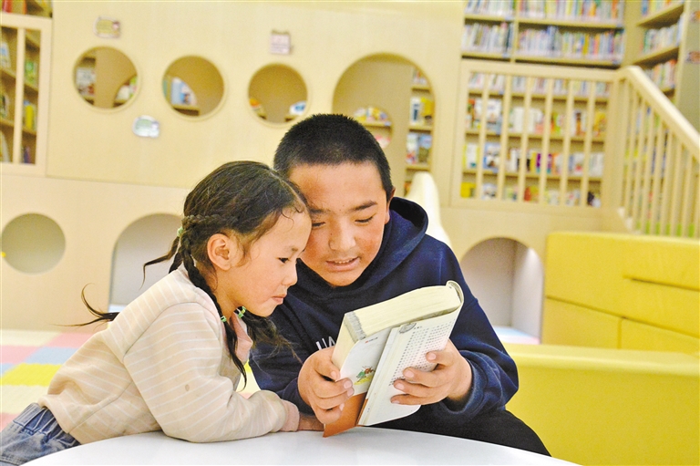 小朋友在那曲市色尼區南部新城的“温暖嘉·色尼城市書房”閲讀。記者 汪純 攝