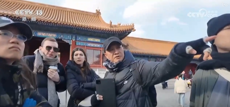 故宮精講是姚海建的“金字招牌”。他每次都會帶上一份故宮地圖,給外國遊客先介紹一下故宮的歷史脈絡和總體佈局。大到王朝迭代、建築風格,小到一磚一瓦的顏色搭配、背後的特殊寓意,他總能精準拿捏外國遊客的好奇心,用方便外國遊客理解的方式,將中國傳統歷史和文化向遊客娓娓道來。