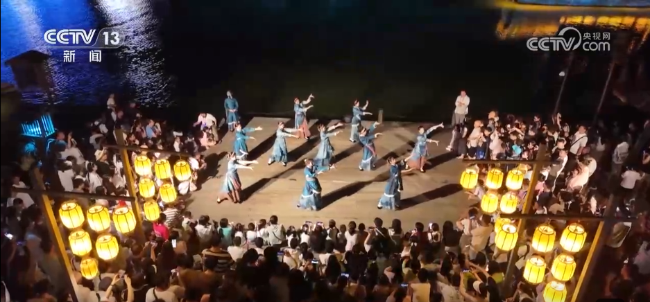 在湖北黃岡,音樂劇《大江東去》户外版激情上演。夜幕降臨,明月高懸,古琴聲如泉水叮咚,電子鼓點如雷霆轟鳴,觀眾們在這裏與歷史對話,感受蘇東坡在黃州的跌宕人生,體驗“江山如畫”的美妙。