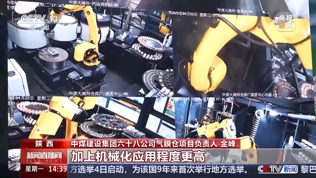 在調度大廳,我們可以看到,這個氣膜倉接入了智能數字孿生系統,倉上倉下40多個傳感器確保倉內的温度,包括瓦斯濃度等安全生產數據全都即時呈現在大屏上,一目瞭然。在這裏,煤炭的儲、裝、運全流程實現了遠程智能操控,效率大幅提升。