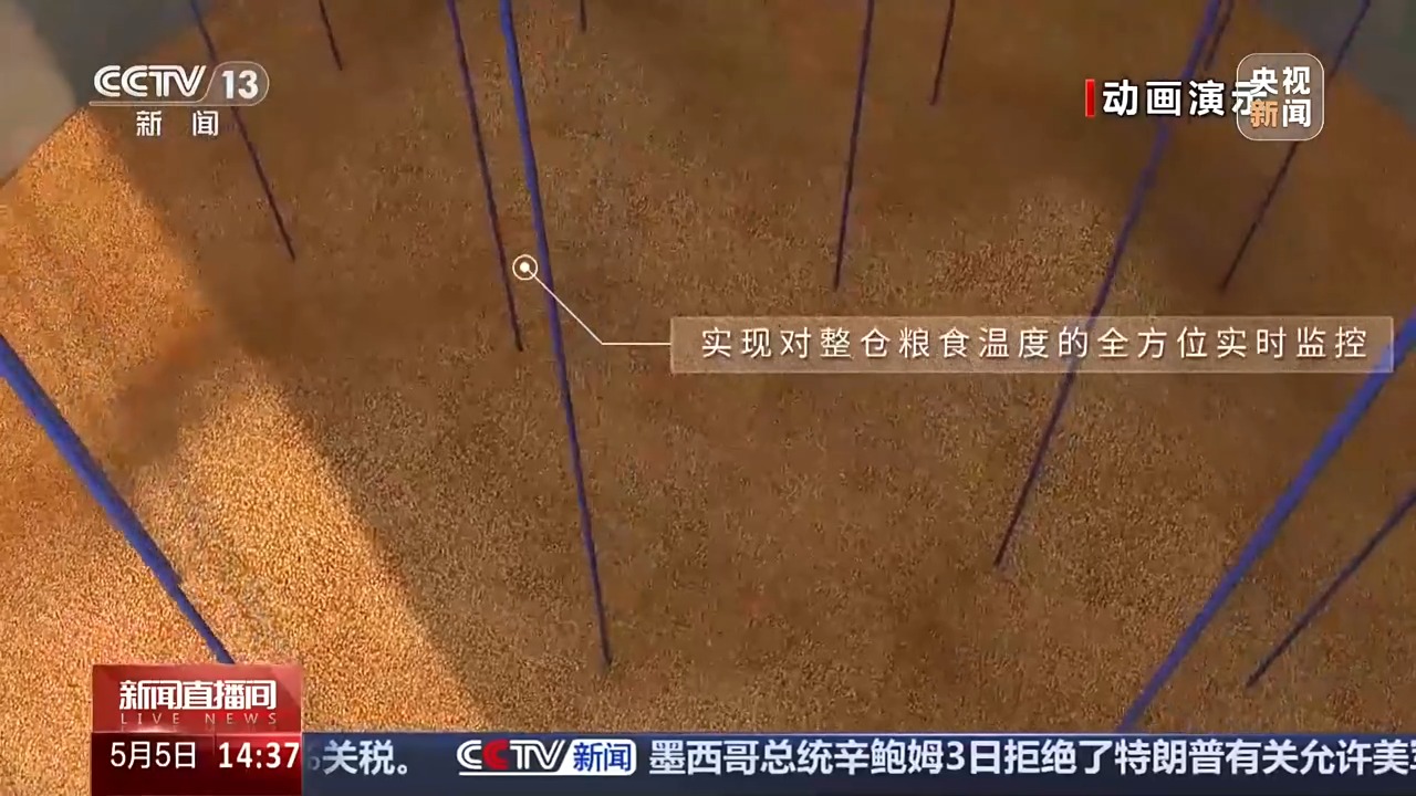 *中央儲備糧長沙直屬庫副總經理 王耀武:*相比傳統倉型,氣膜倉儲存穀物空調控温能耗降低50%,我們在氣膜倉內集成了氮氣氣調技術,把高純度氮氣注入氣膜倉內部,營造一個幾乎無氧的環境,達到防治害蟲、確保糧食品質的目的。