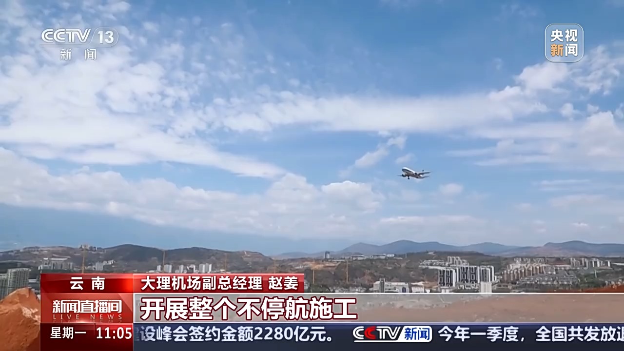 *大理機場副總經理 趙姜:*利用我們整個航班的間隙,開展不停航施工,也就是在確保運行不受阻,改擴建能夠順利如期達到建設的預期進度。