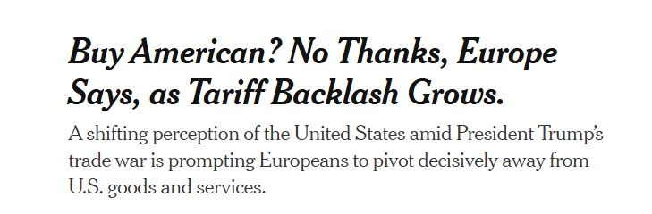 歐洲央行(European Central Bank,ECB)的最新評估顯示,在美國與歐洲貿易戰的緊張局勢下,許多歐洲消費者開始迴避美國產品和服務,“不再購買美國貨”似乎是一次可能長期持續的決定性轉變。