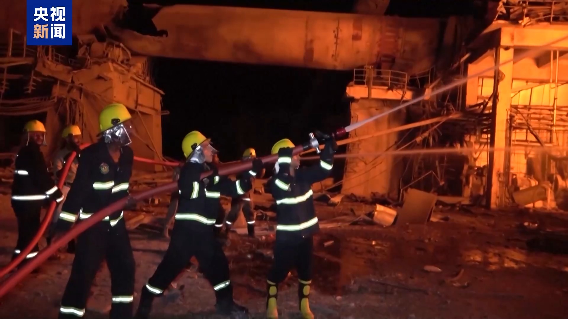 從畫面上可以看到,現場火光沖天,濃煙滾滾,多名消防員已在現場開展滅火工作。